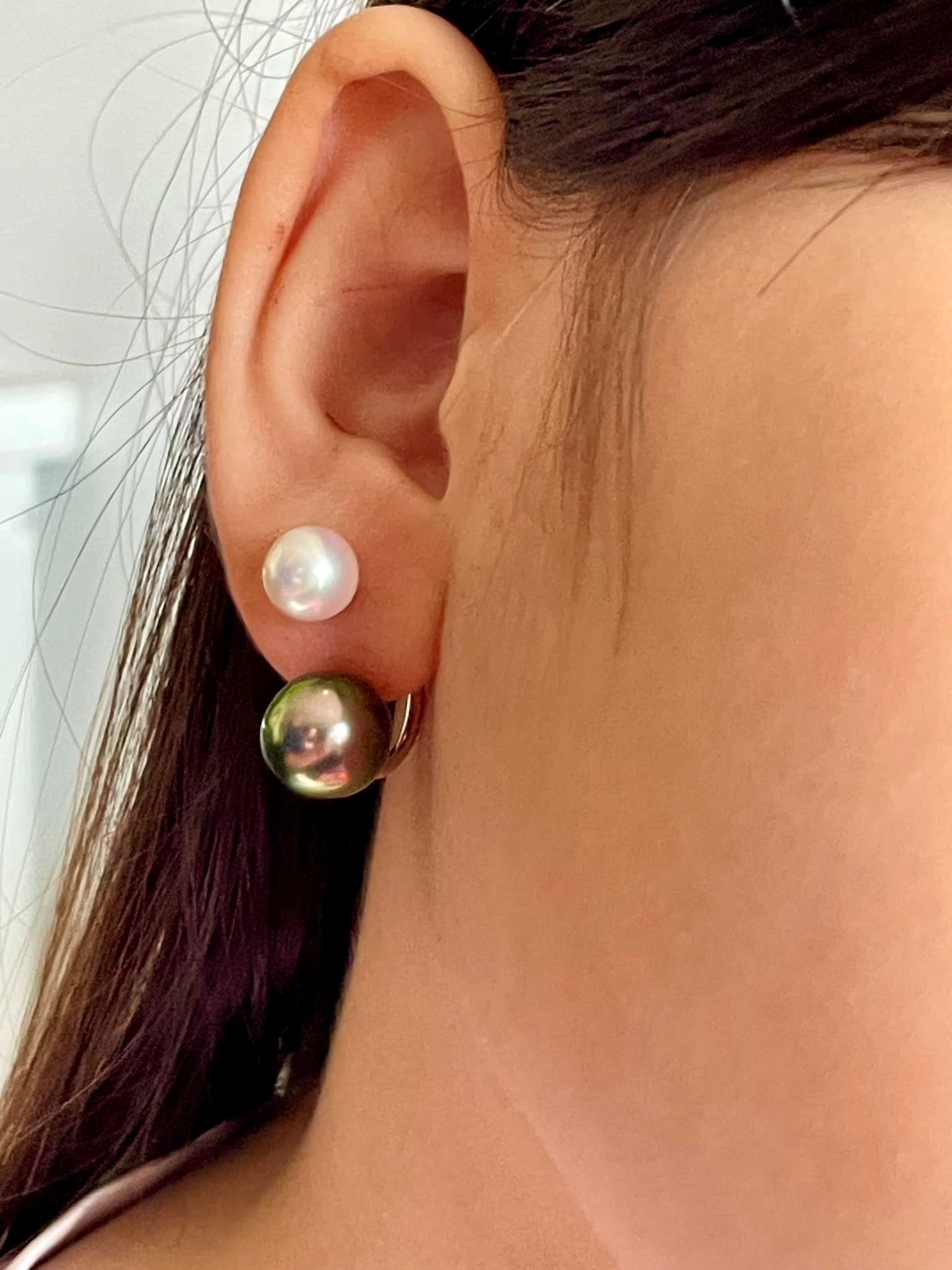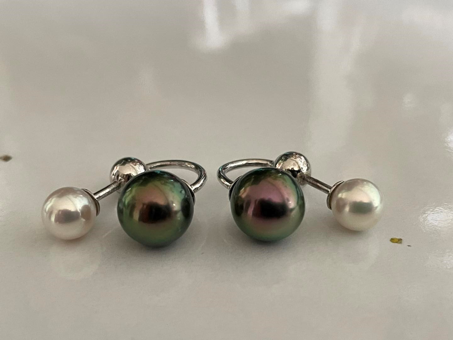 Bông tai dáng móc với sự kết hợp của ngọc Tahiti và ngọc Akoya