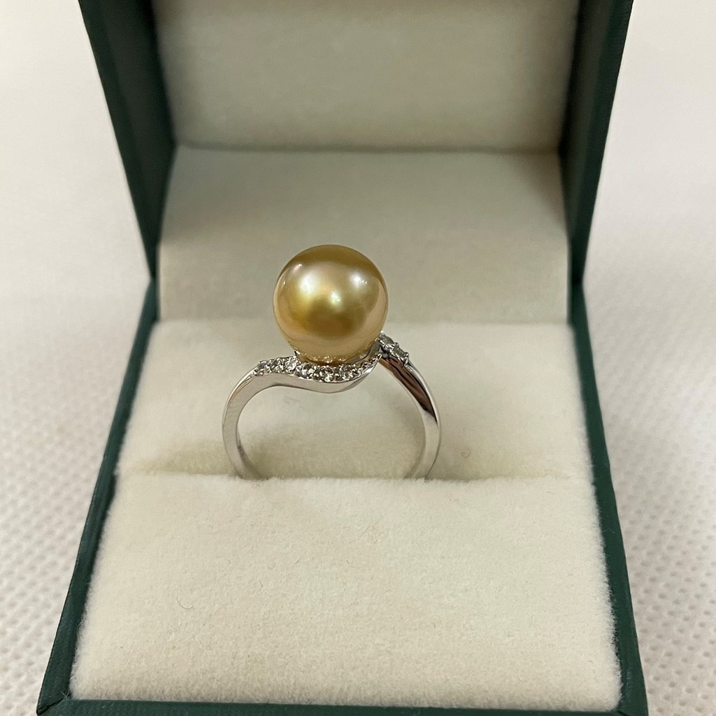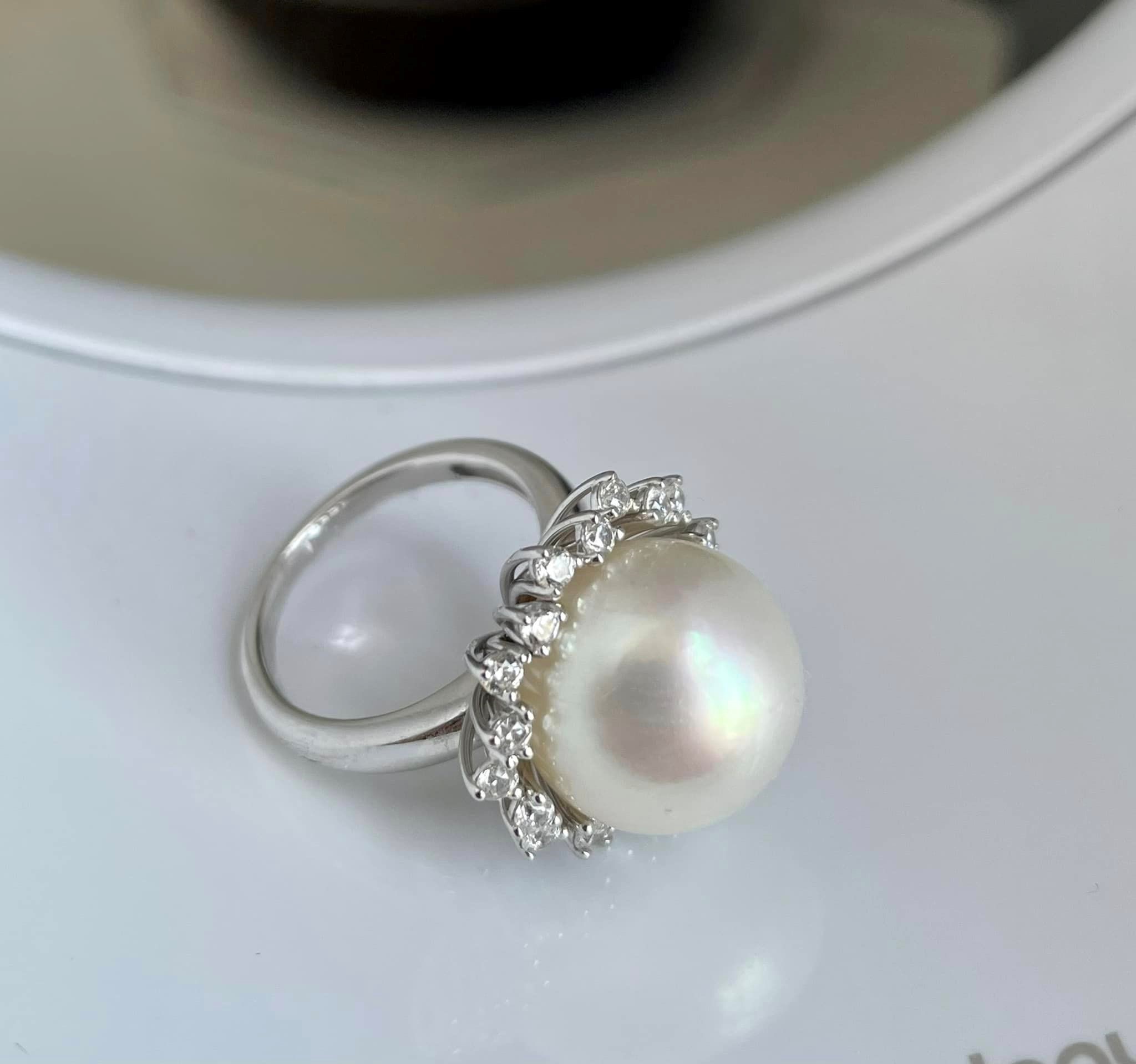 Nhẫn Ngọc Trai Southsea Úc Vàng Freesize Cùng Ổ Bạc Si Vàng