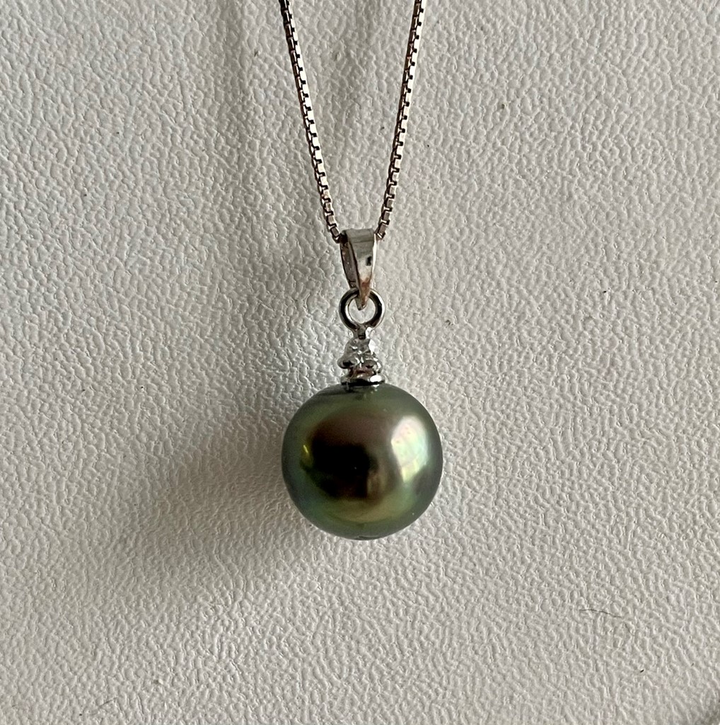 Mặt Dây Chuyền Ngọc Trai Tahiti Ánh Lông Công 9mm Màu Xanh Lá, Tím Và Vàng