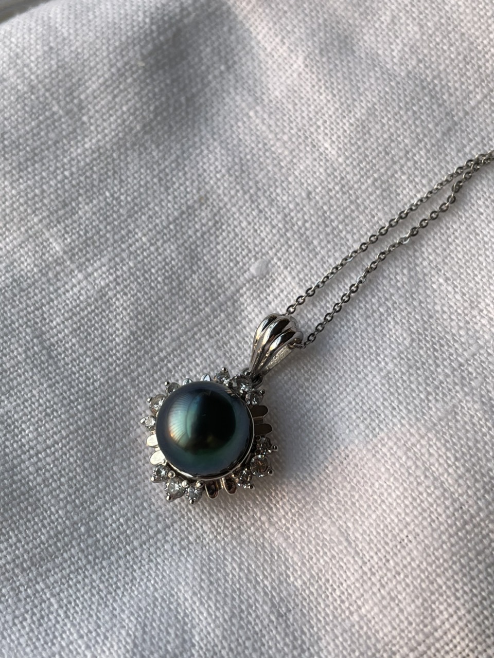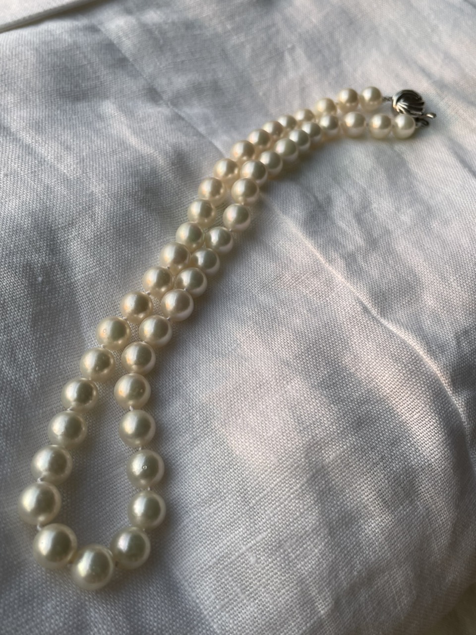 Chuỗi vòng cổ ngọc trai và vải lanh (linen)
