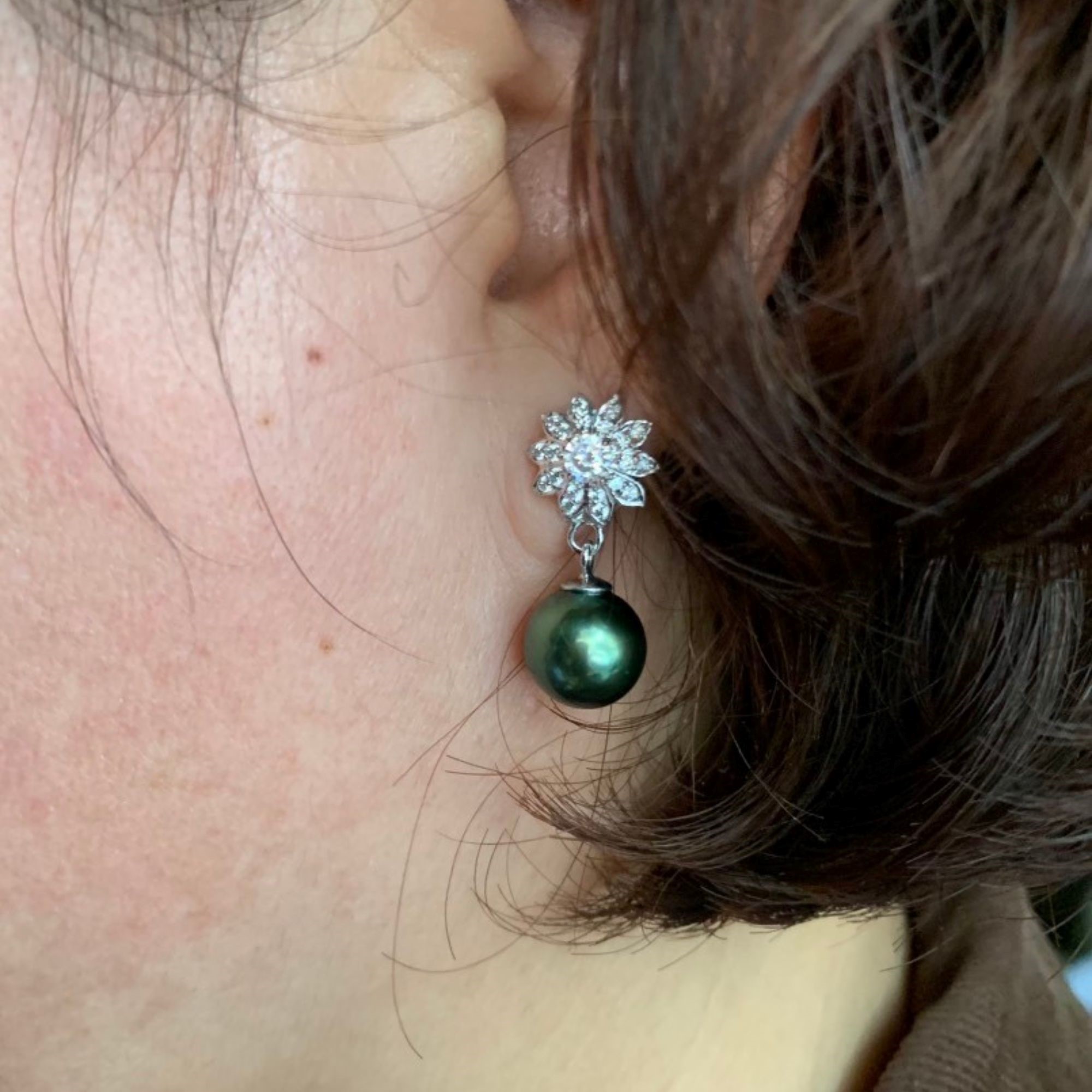 Bông Tai Ngọc Trai Tahiti Ánh Xanh Lông Công