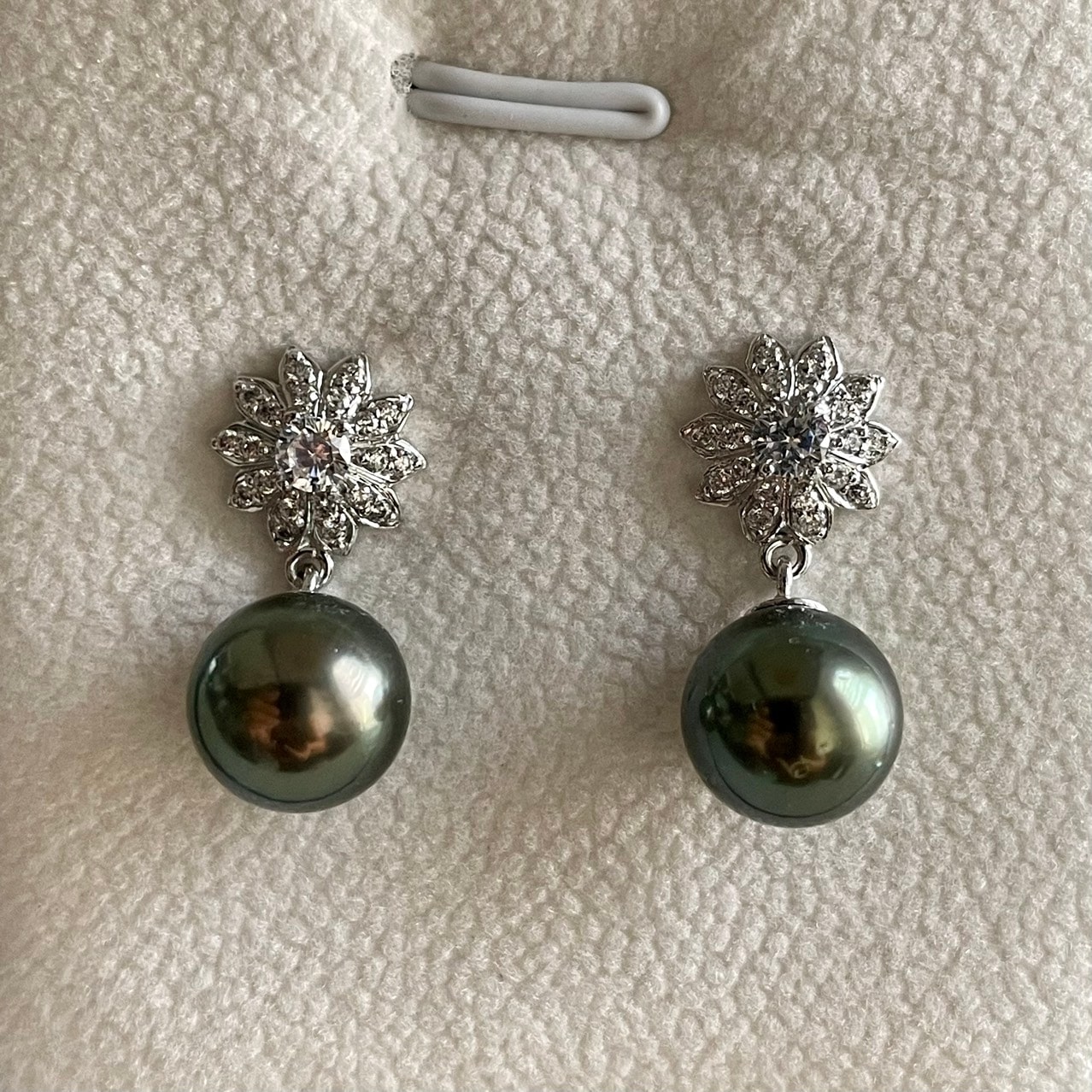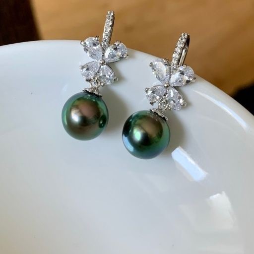 Bông Tai Ngọc Trai Tahiti Ánh Xanh Lông Công