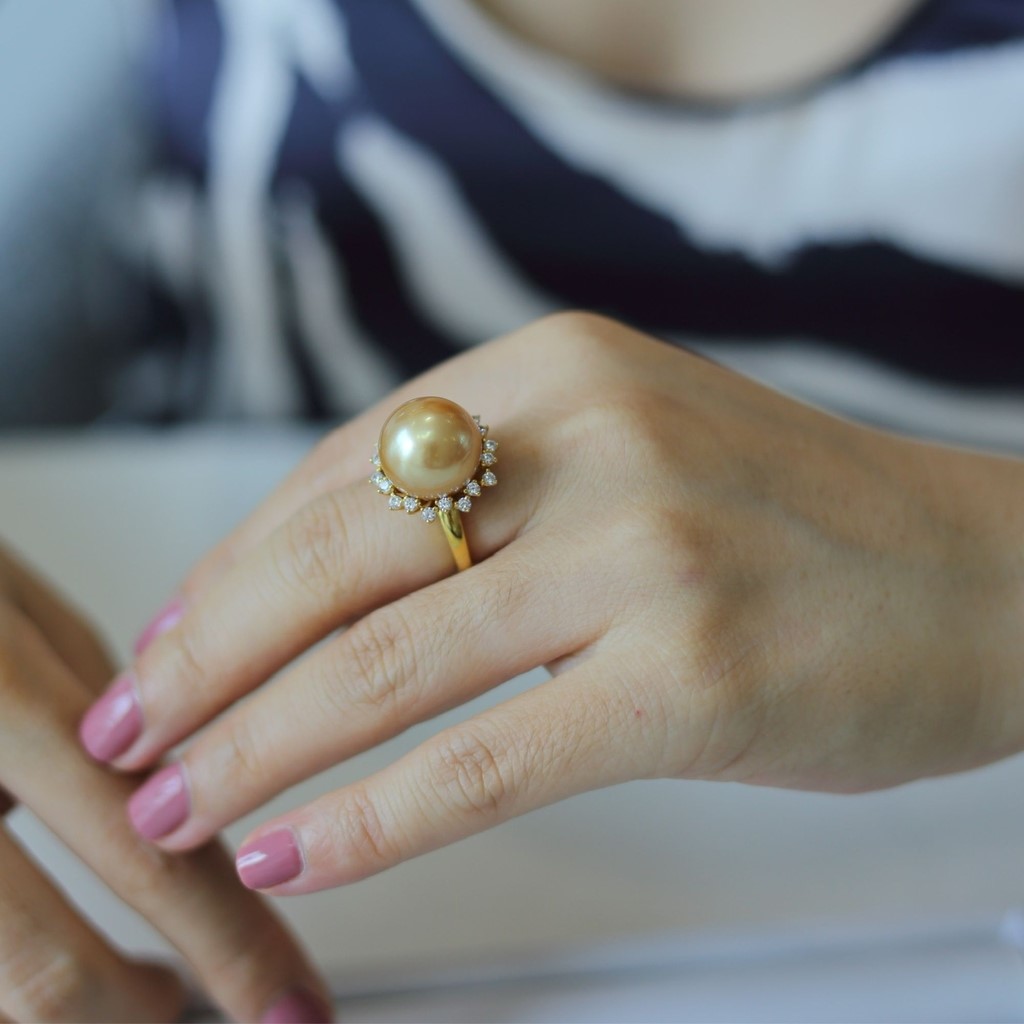 Nhẫn Ngọc Trai Southsea Úc vàng Kết Hợp Vàng 10k