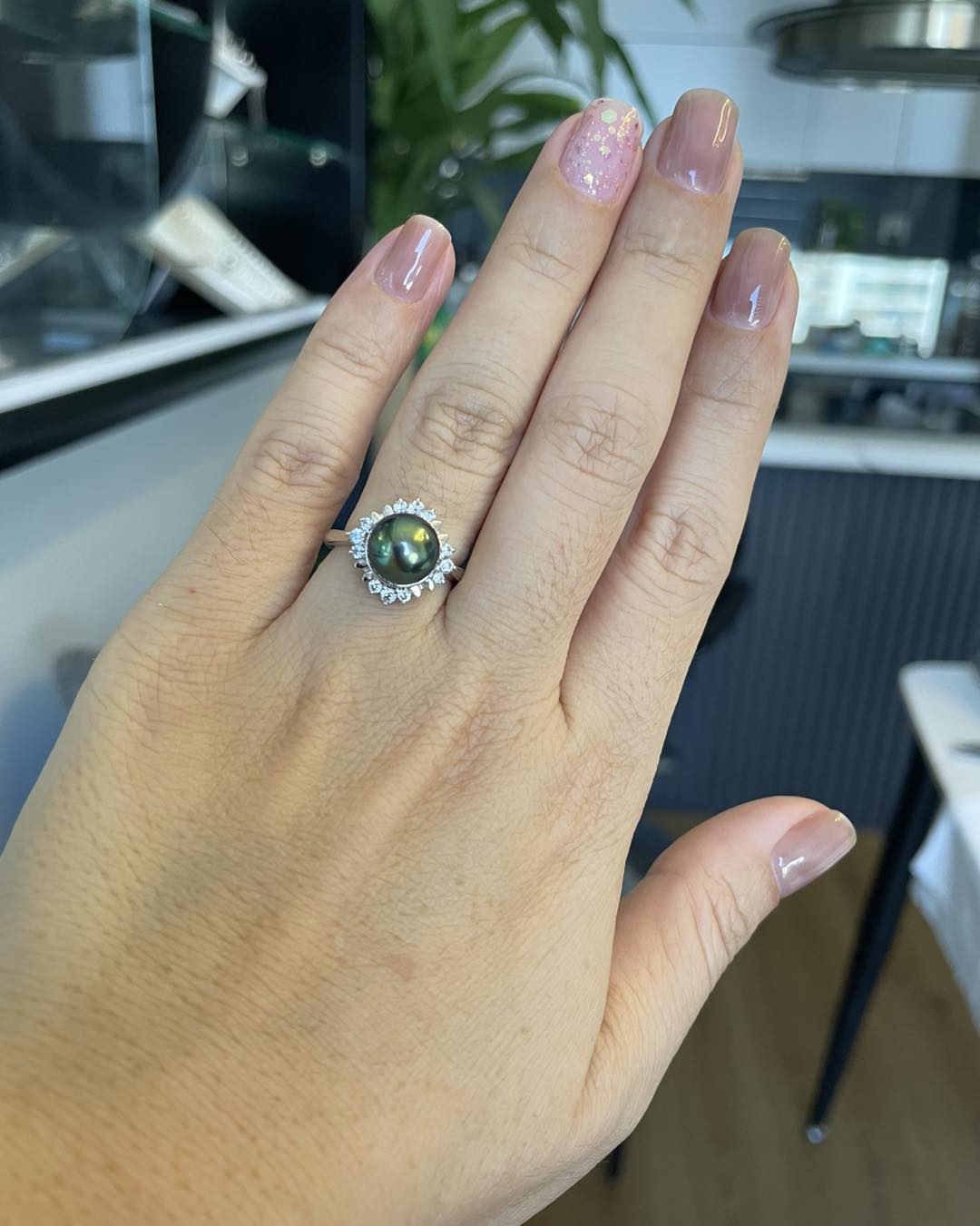 Ngọc trai Tahiti được biết đến với màu sắc đa dạng, từ đen, xanh đến xám và tím. Điều này tạo ra một cái nhìn độc đáo và quyến rũ cho nhẫn đính hôn. Đặc biệt, ngọc trai Tahiti thường được coi là biểu tượng của sự quý phái và sự sang trọng.