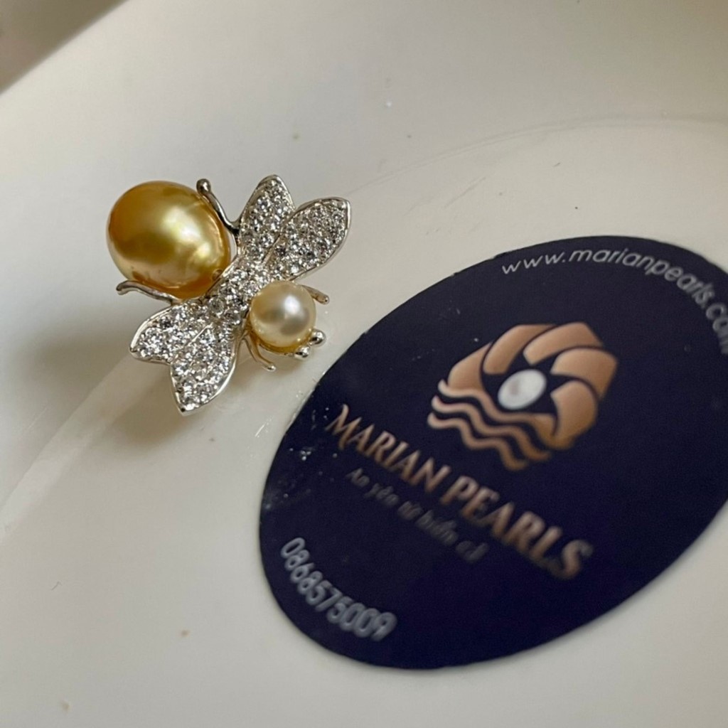 Cài áo con ong từ ngọc Southsea Úc vàng