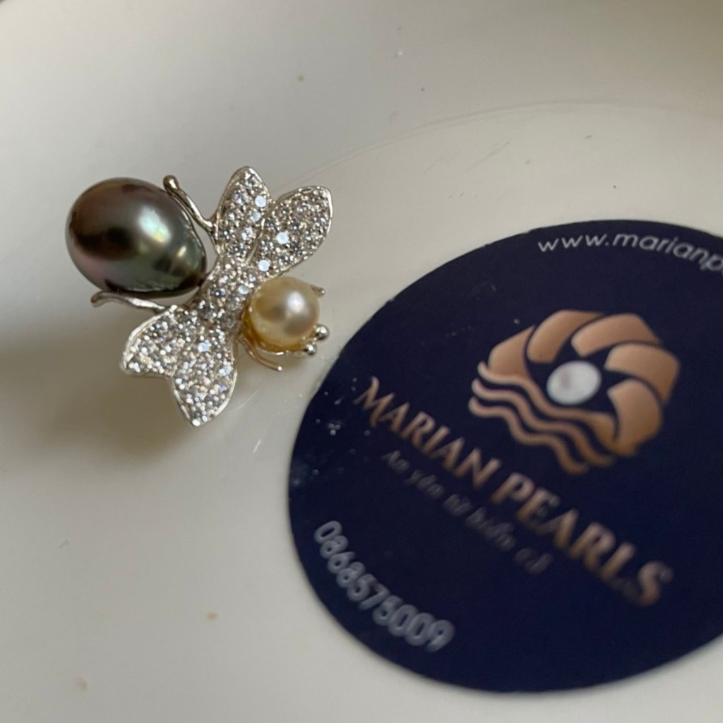 Cài áo con ong ngọc trai Tahiti kết hợp Ngọc Akoya