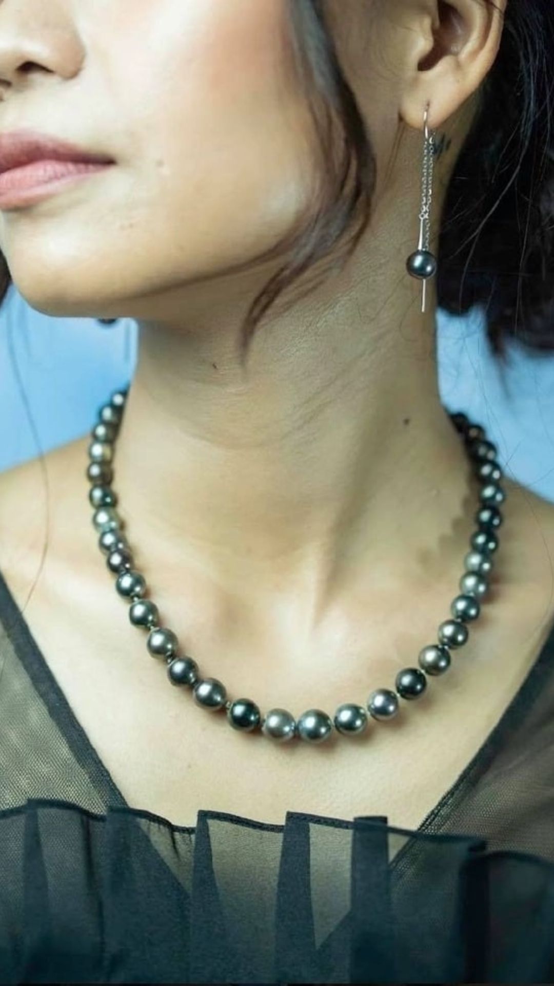 Vòng Cổ Và Bông Tai Ngọc Trai Đen Tahiti